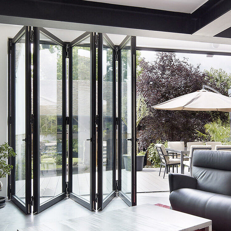 Yüksek kaliteli pazar için tasarlanmış ağır profilli katlanır alüminyum cam iki katlı kapılar.SZG çerçeve bozulmadan çeşitli hava koşullarına dayanır.